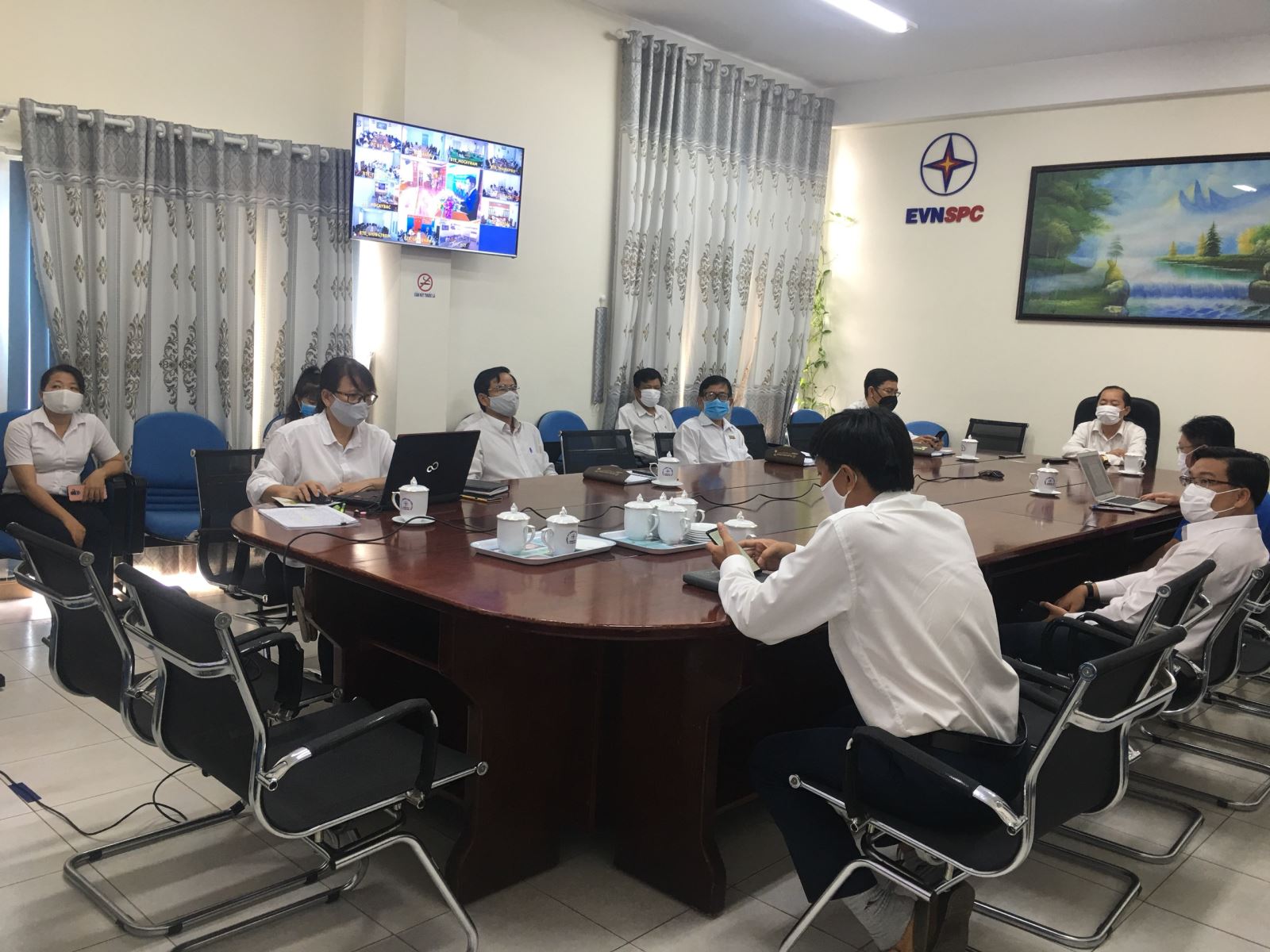 Một số hình ảnh tại hội nghị kỷ niệm 45 năm EVNSPC thông qua cầu truyền hình trực tuyến trên 21 tỉnh thành phía Nam