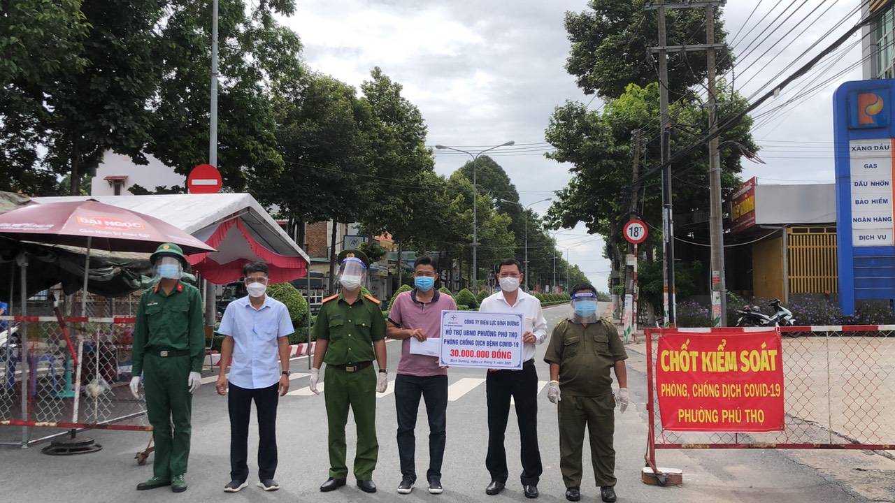 Tại tỉnh Bình Dương, Công ty Điện lực Bình Dương (PC Bình Dương)trao hỗ trợ số tiền 100 triệu đồng ủng hộ Quỹ phòng, chống dịch bệnh Covid-19. Vận động CBCNV gửi tin nhắn đến 1408 đóng góp cho Quỹ vắc-xin phòng, chống Covid của Chính phủ số tiền là 101.937.000 đồng tương ứng với 1.240 lượt tin nhắn. Điện lực Thuận An – PC Bình Dương tổ chức thăm và tặng quà tại chốt kiểm dịch cầu Phú Long và cầu Vĩnh Bình, chi phí thăm hỏi 5 triệu đồng. Điện lực Dầu Tiếng đã tặng nhu yếu phẩm cho UBMTTQ Việt Nam huyện Dầu Tiếng hỗ trợ nhân dân trong các khu cách ly, khu phong tỏa.Đến ngày ngày 28 thàng 7 năm 2021, PC Bình Dương thăm hỏi và hỗ trợ 30 triệu đồng các chốt kiểm soát phòng, chống dịch thuộc UBND Phường Phú Thọ - Thành phố Thủ Dầu Một. Gần nhất là ngày 03 tháng 8 năm 2021, PC Bình Dương trao tặng 02 máy thở trị giá 200 triệu đồng cho Sở Y tế tỉnh Bình Dương.