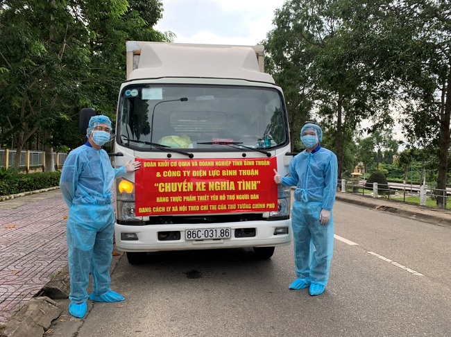 Tại tỉnh Bình Thuận, ngày 23 tháng 7 năm 2021, PC Bình Thuận thực hiện “Chuyến xe nghĩa tình” tặng những phần quà nghĩa tình để hỗ trợ người dân thị xã La Gi đang thực hiện giãn cách xã hội nhu yếu phẩm thiết yếu gồm: gạo, mì tôm, khẩu trang y tế, nước uống, bánh, sữa, Vitamin C…. với tổng số tiền 31.750.000 đồng. Cùng ngày đoàn cũng đến tặng quà ủng hộ khu cách ly tại khu ký túc xá Trường Chính trị tỉnh Bình Thuận, ủng hộ 50 triệu đồng và nhu yếu phẩm cần thiết như: mì tôm, nước uống, sữa, bánh, khẩu trang y tế, dung dịch sát khuẩn.