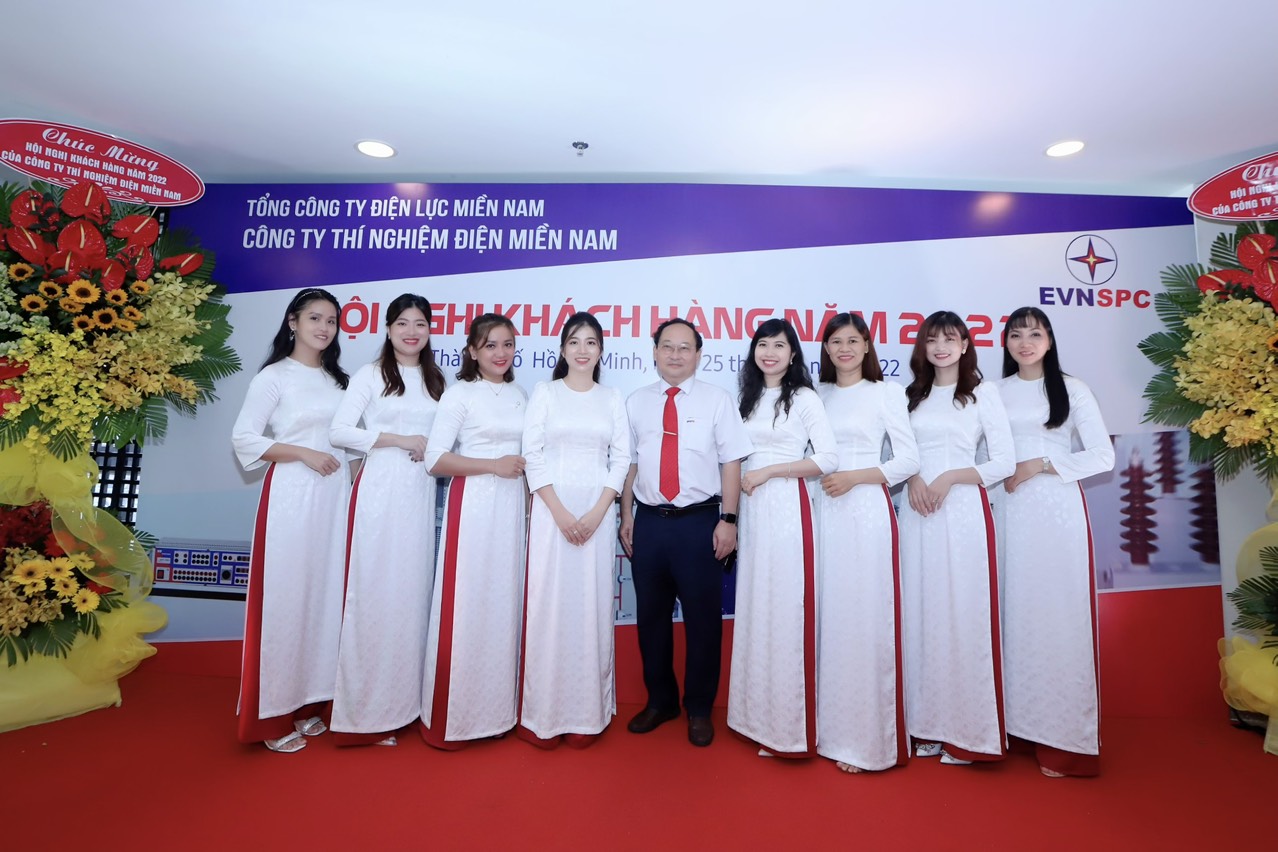 Ông Phạm Hữu Nhân (đứng giữa) tại Hội nghị Khách hàng năm 2022