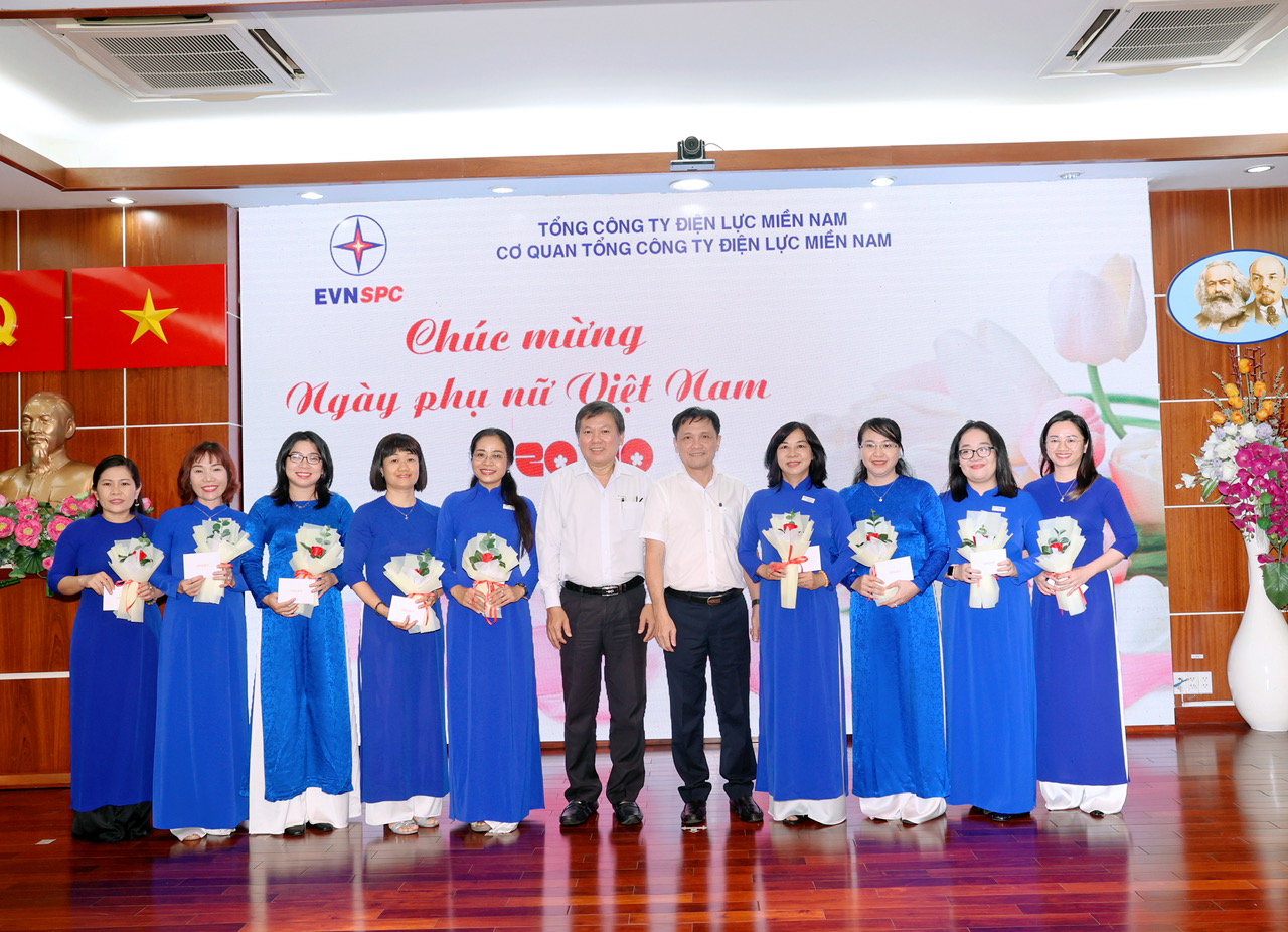 Sáng ngày 20/10/2023, Cơ quan Tổng công ty Điện lực miền Nam (EVNSPC) tổ chức họp mặt nhân Kỷ niệm 93 năm ngày thành lập Hội Liên hiệp Phụ nữ Việt Nam (20/10/1930-20/10/2023). Tham dự có dự hiện diện của ông Nguyễn Phước Đức – Thành viên HĐTV kiêm Tổng Giám đốc, Trưởng ban Vì sự tiến bộ Phụ nữ Tổng Công ty; các thành viên HĐTV, các Phó Tổng Giám đốc Tổng công ty; Đại diện lãnh đạo Công đoàn, Ban vì sự tiến bộ Phụ nữ, Ban Nữ công Tổng công ty, đại diện Ban chấp hành Công đoàn, Đoàn thanh niên Cơ quan Tổng công ty và toàn thể nữ CNVCLĐ khối Cơ quan Tổng Công ty Điện lực miền Nam.