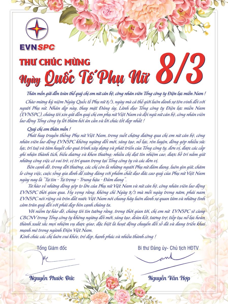 Thư chúc mừng ngày Quốc tế phụ nữ 8/3