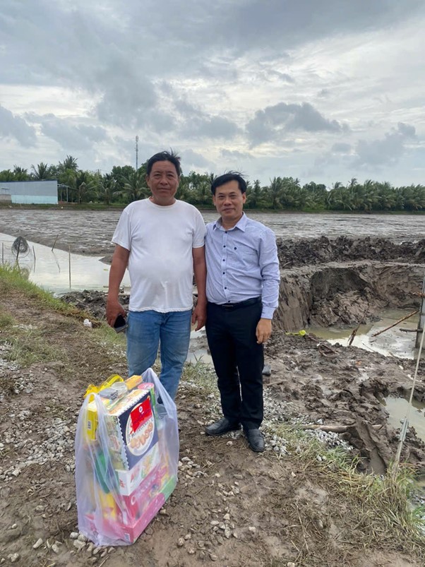 Thành viên HĐTV Bành Đức Hoài (thứ 4 từ phải qua) thăm và tặng quà người lao động làm việc xuyên lễ tại tỉnh Đồng Tháp