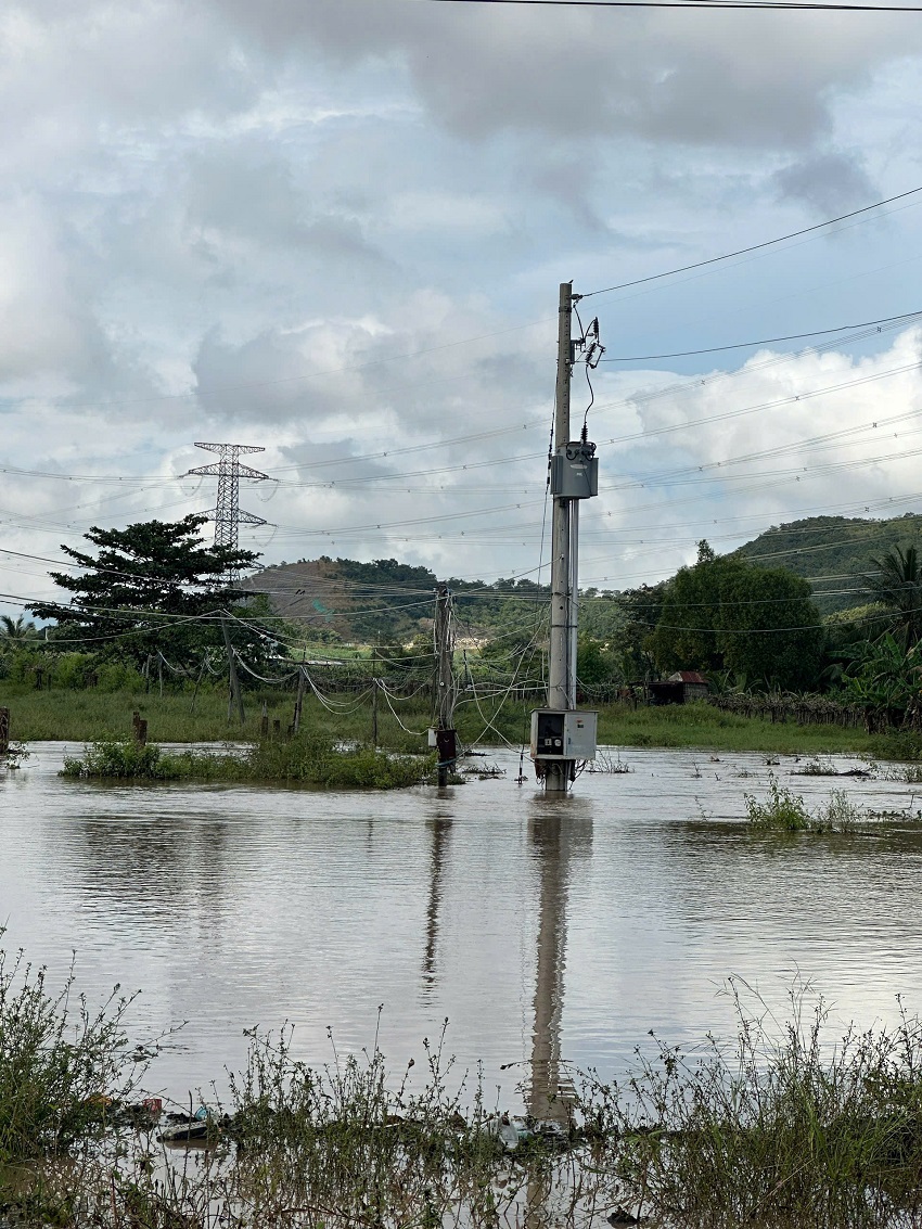 Theo đó, từ đêm 3/12 đến sáng 4/12, nước lũ dâng nhanh tại nhiều xã thuộc vùng trũng trên địa bàn, kết hợp lượng nước xả từ các hồ thủy lợi càng khiến tình hình thêm phức tạp. Dòng lũ mạnh đã gây sạt lở nền móng tại một số vị trí, làm hư hỏng trụ điện và ảnh hưởng đến công trình điện trung thế trên địa bàn.