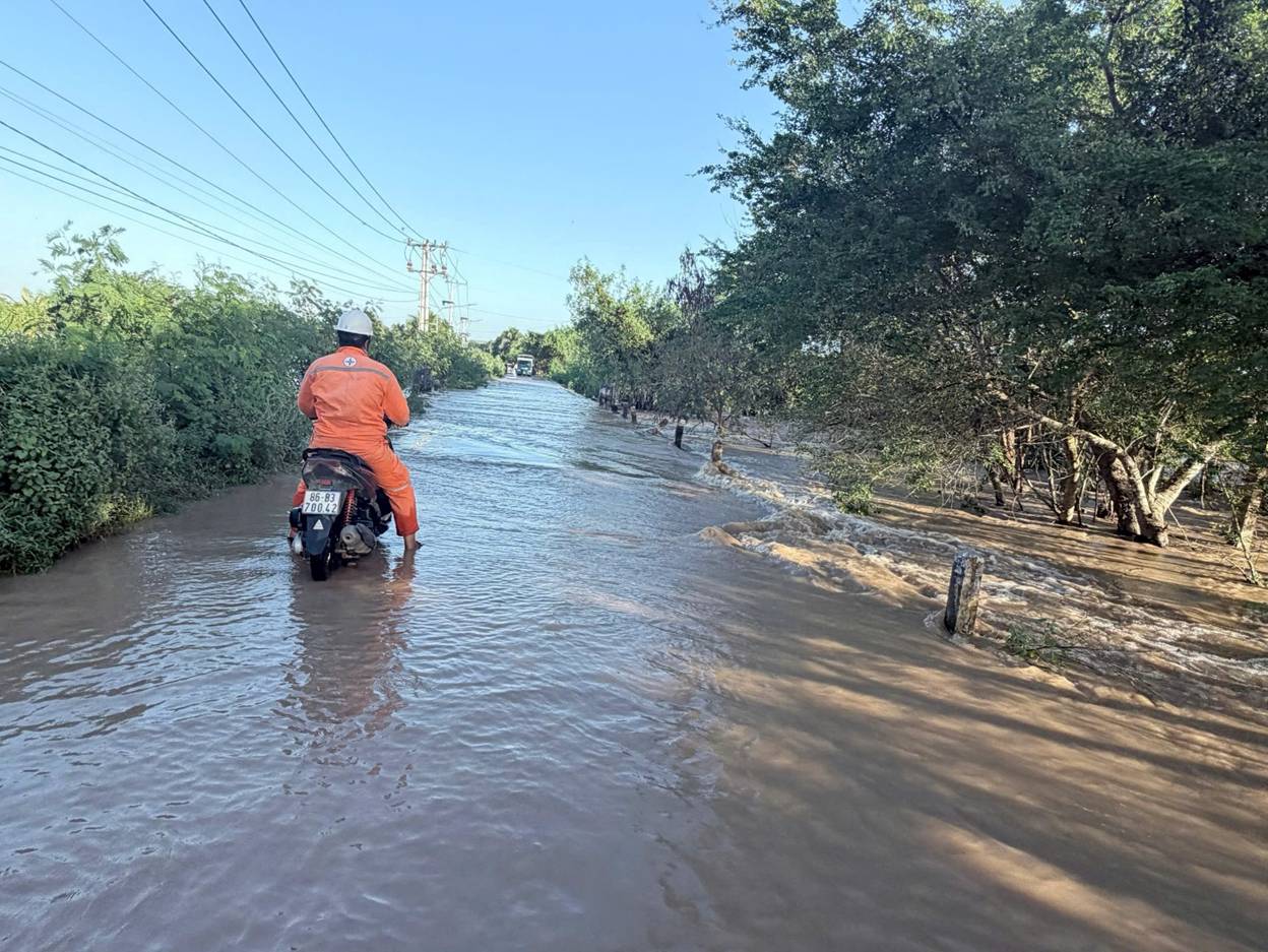 Trước diễn biến phức tạp, ông Phan Sỹ Duy - Giám đốc Công ty Điện lực Lâm Đồng (PCLĐ) có mặt tại các điểm xung yếu ở Hàm Thuận Bắc để kiểm tra và chỉ đạo công tác xử lý. Tại những nơi nước lũ dâng nhanh, Giám đốc PCLĐ yêu cầu lực lượng quản lý vận hành ưu tiên tuyệt đối vấn đề an toàn điện, an toàn lao động kịp thời cô lập các điểm nguy hiểm, phối hợp chặt chẽ với chính quyền địa phương nhằm bảo đảm an toàn cho người dân.