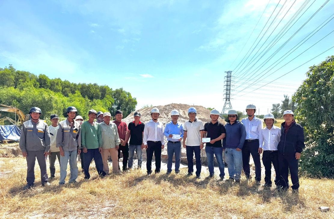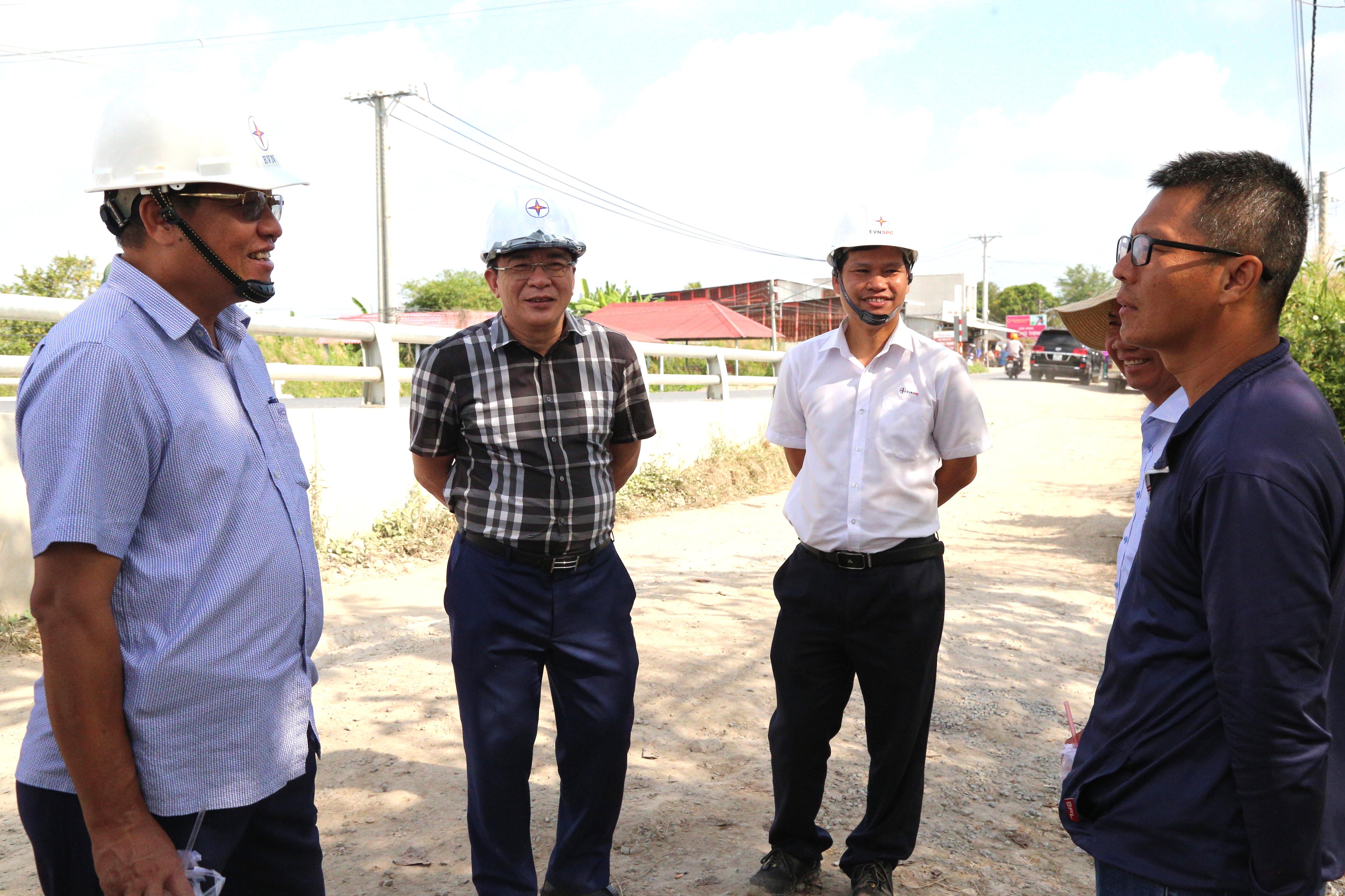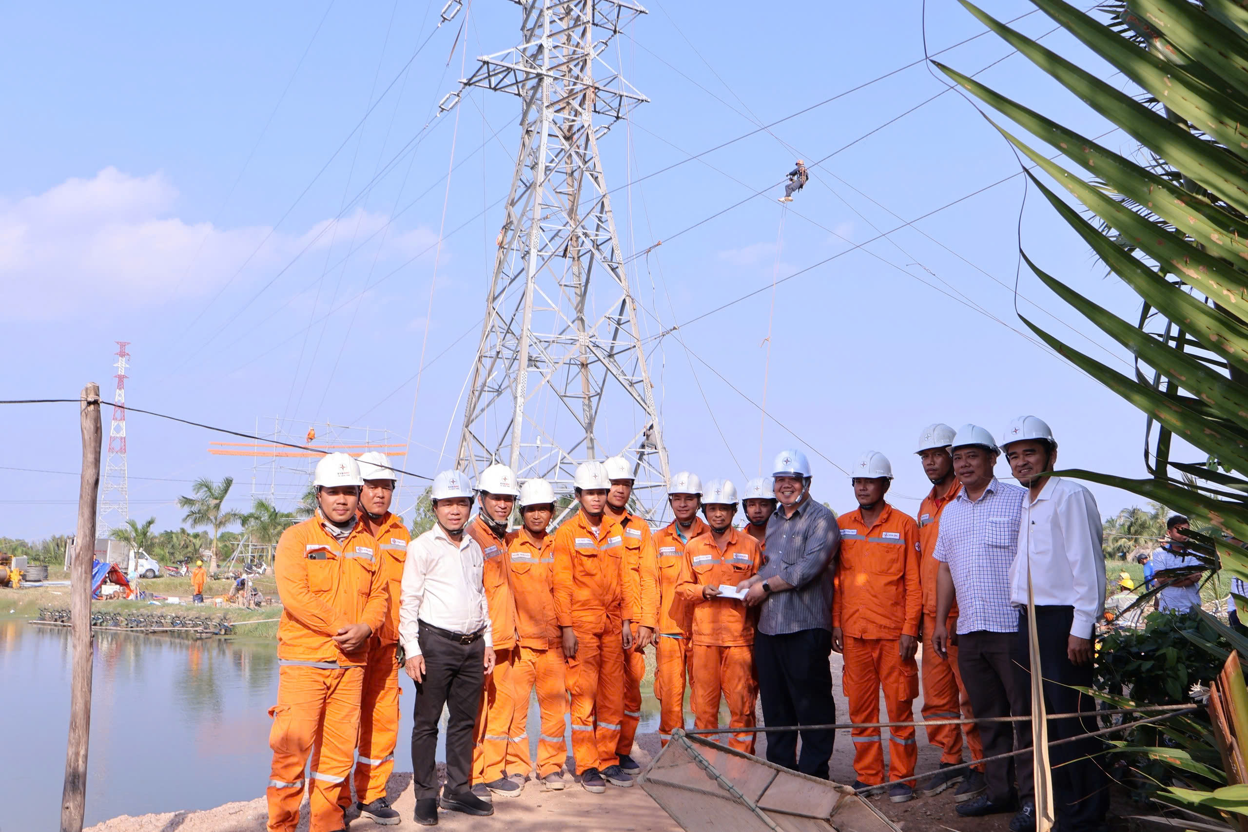 Phó Tổng giám đốc Đoàn Đức Hưng kiểm tra công trình "Đường dây 110kV Ba Tri – Bình Thạnh và kéo dây mạch 02", Vĩnh Long.
