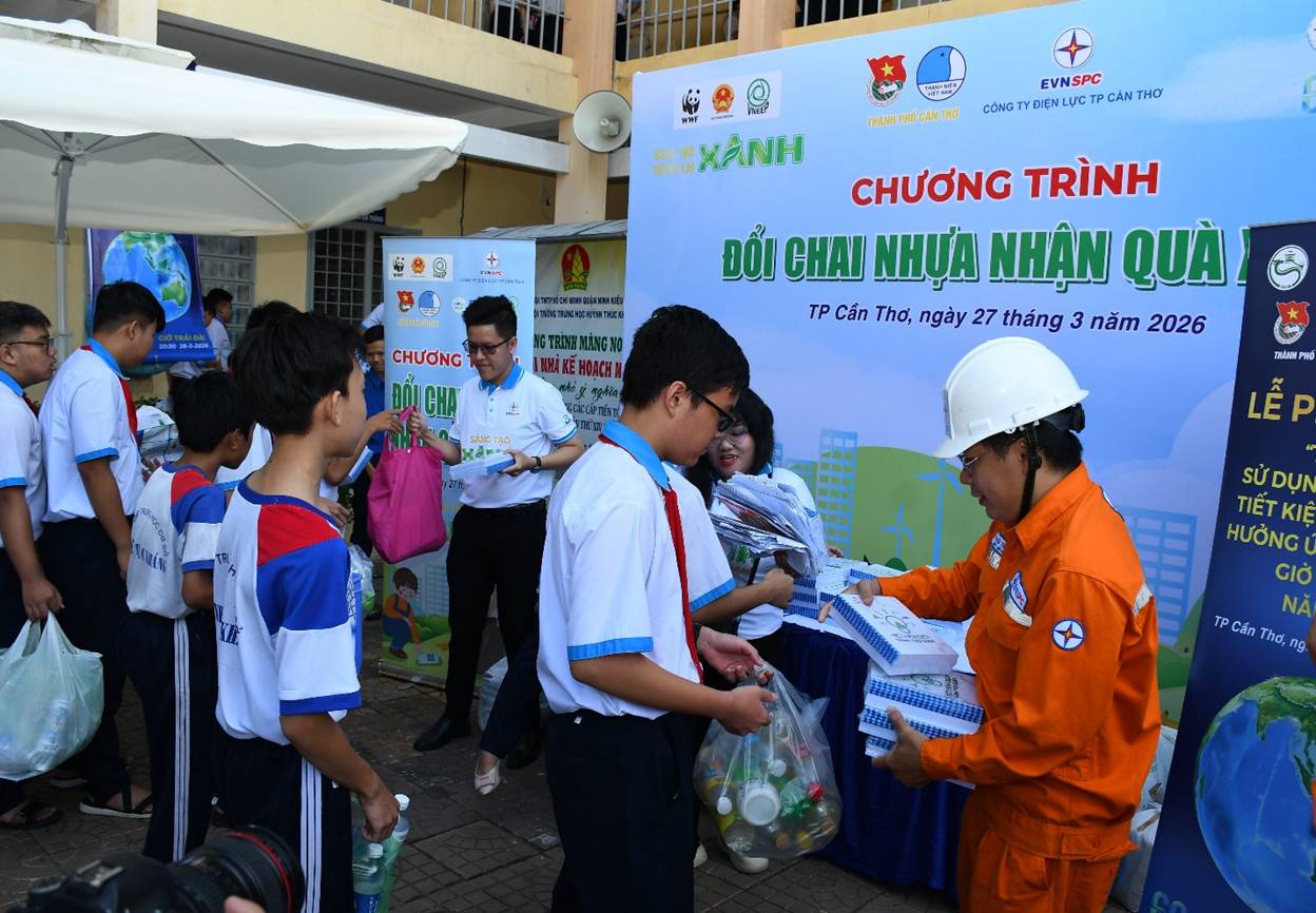 Chương trình cũng tổ chức nhiều hoạt động thiết thực như giao lưu hỏi, đáp kiến thức về sử dụng điện tiết kiệm, tìm hiểu ý nghĩa Giờ Trái đất, triển khai mô hình “Đổi chai nhựa nhận quà xinh”… thu hút sự hưởng ứng sôi nổi của học sinh. Những hoạt động này góp phần hình thành thói quen tiết kiệm năng lượng và ý thức bảo vệ môi trường ngay từ sớm.