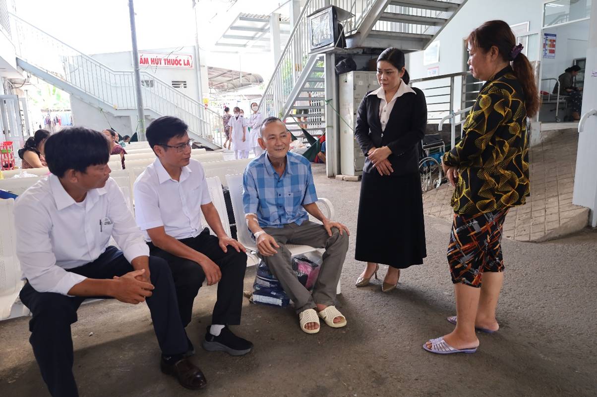 Tại đây, đoàn đã thăm hỏi tình hình sức khỏe của anh Quách Tiến Đạt, hiện đang là nhân viên treo tháo điện kế thuộc Tổ Quản lý vận hành, Điện lực Nha Mân, Công ty Điện lực Đồng Tháp (PC Đồng Tháp).