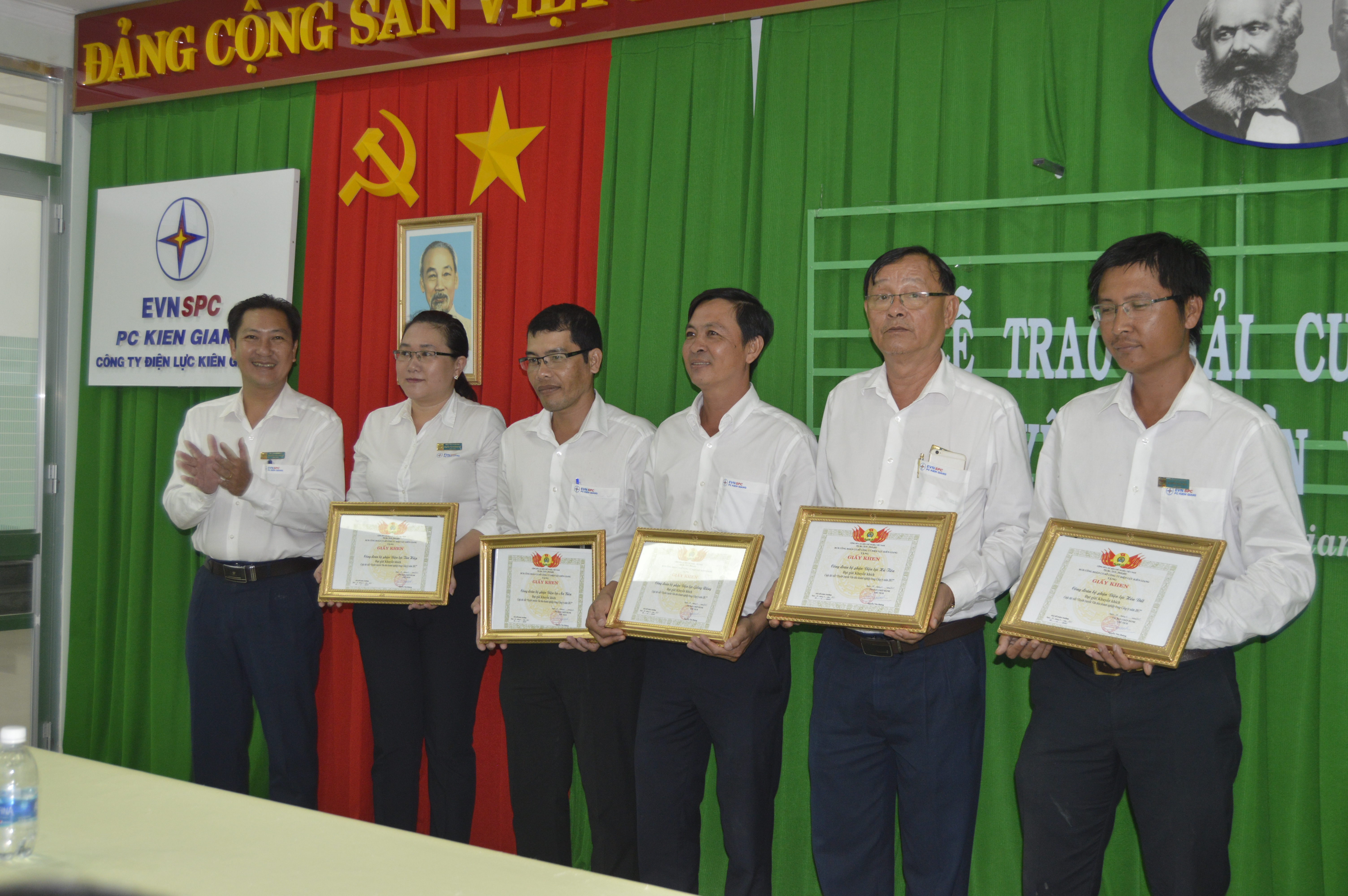Giải tập thể gồm: 1 giải Nhất trị giá 3 triệu đồng thuộc về Công đoàn Bộ phận Kinh Doanh; 1 giải Nhì trị giá 3 triệu đồng thuộc về Công đoàn Bộ phận Điện lực Vĩnh Thuận; 1 giải Ba trị giá 2 triệu đồng Công đoàn Bộ phận Điện lực Rạch Giá. Các bài dự thi đạt giải sẽ được Công ty đăng lên Website Công ty Điện lực Kiên Giang và tuyên truyền đến toàn thể CBCNV trong Công ty.