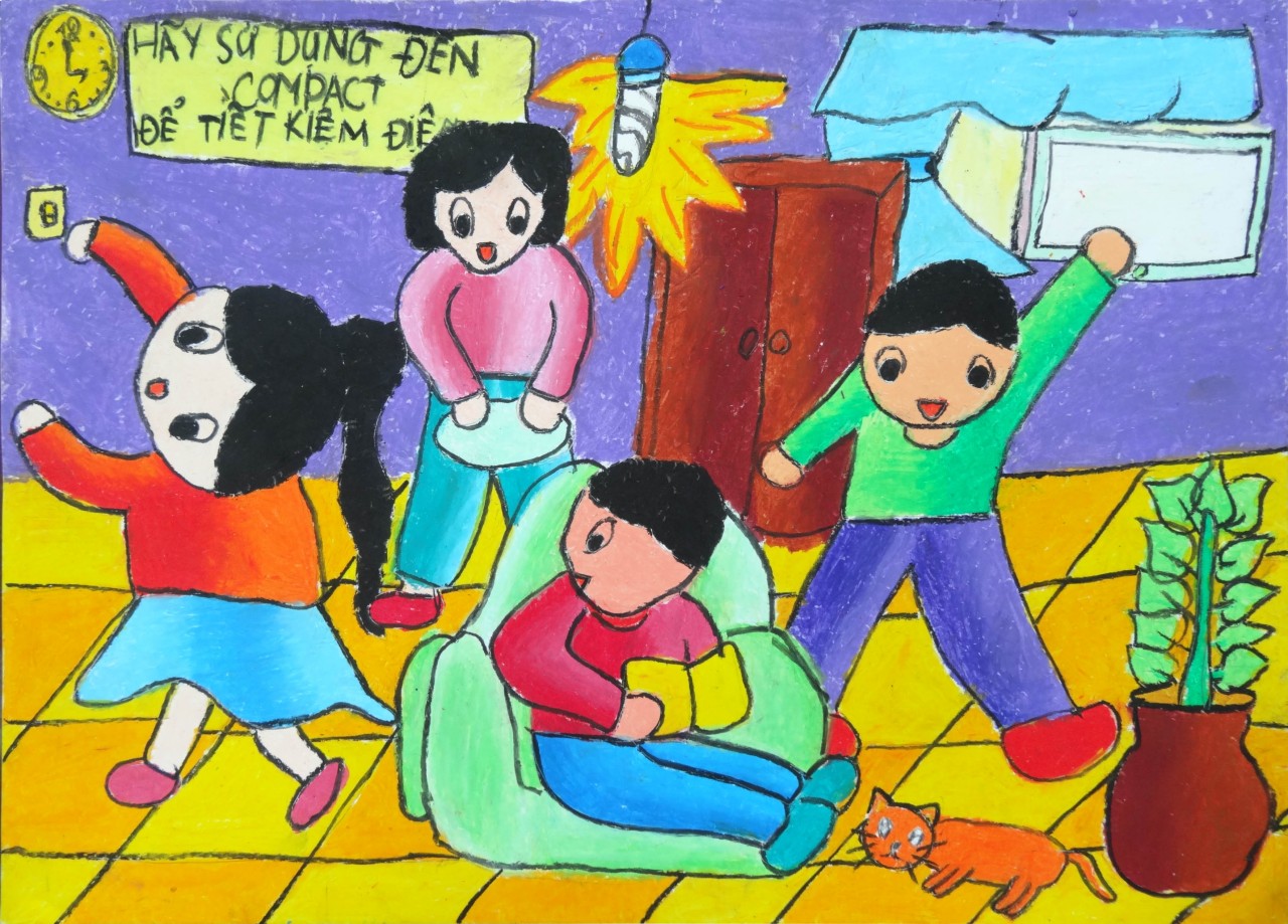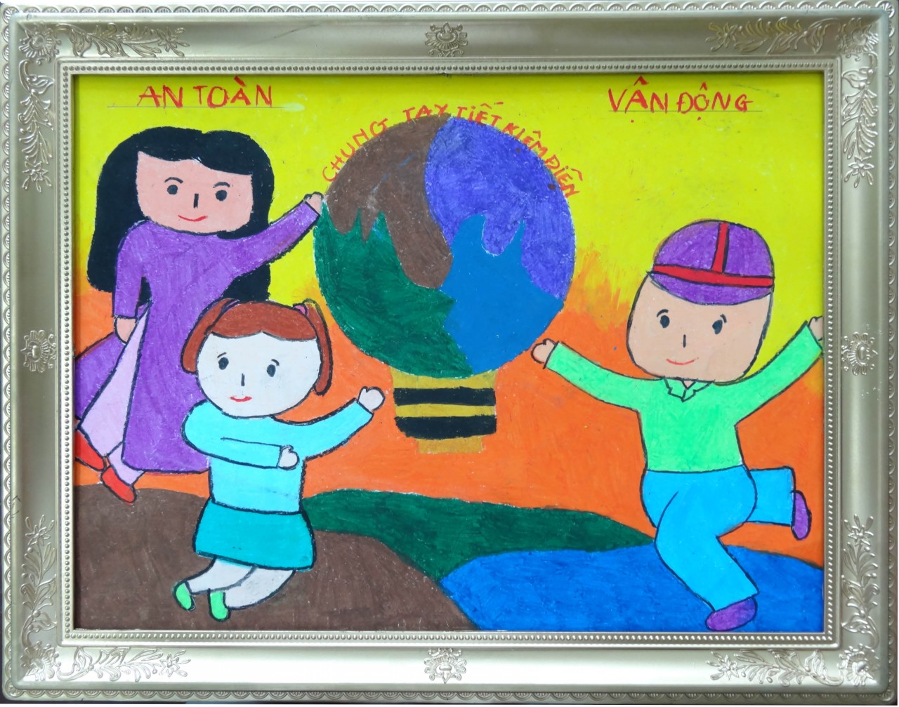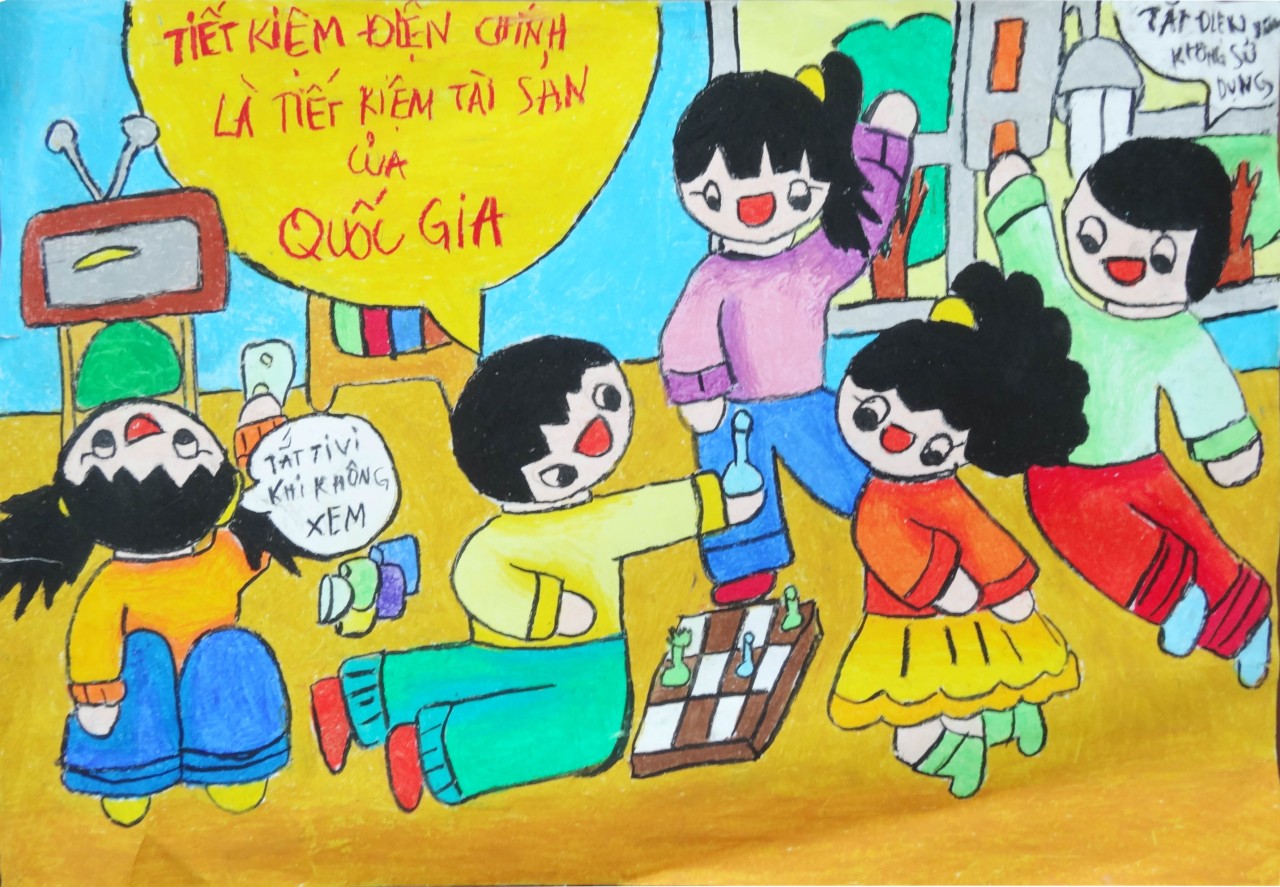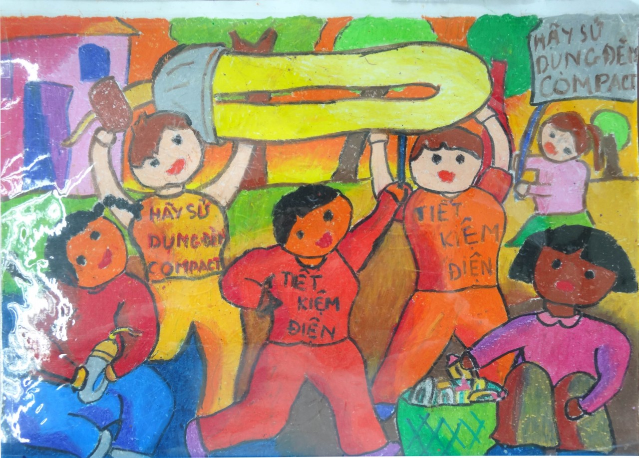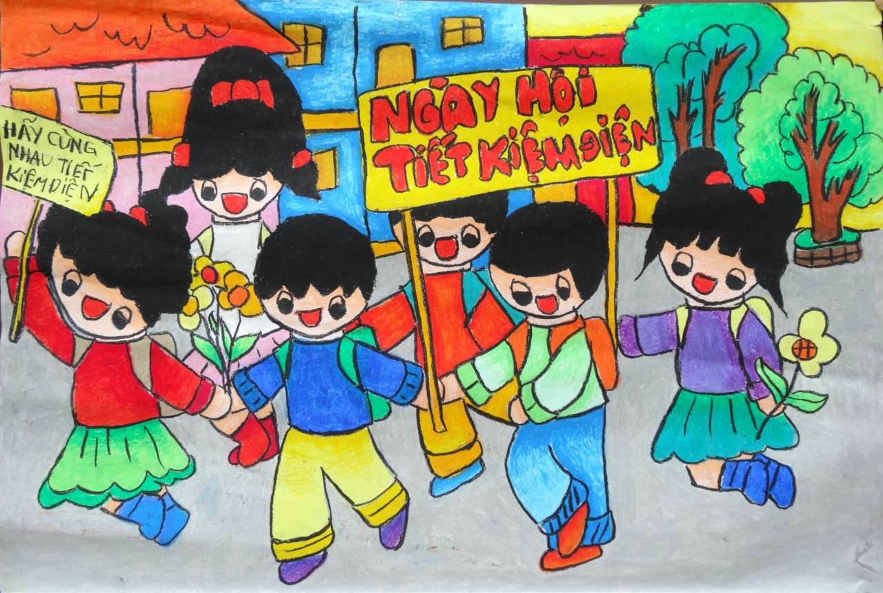 Tranh vẽ cổ động tiết kiệm điện khối học sinh tiểu học hưởng ứng "Ngày hội Tiết kiệm điện 2012" tại Cần Thơ