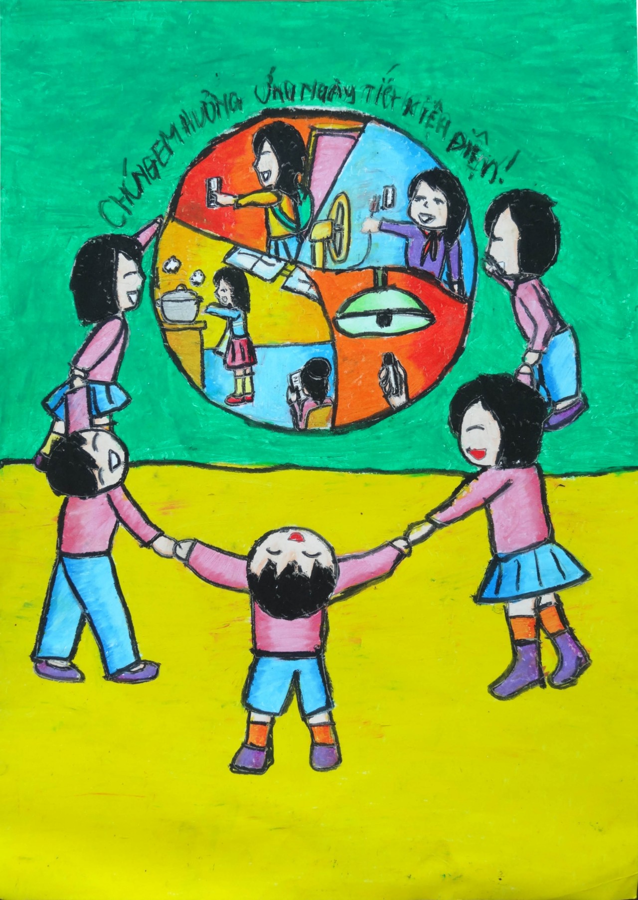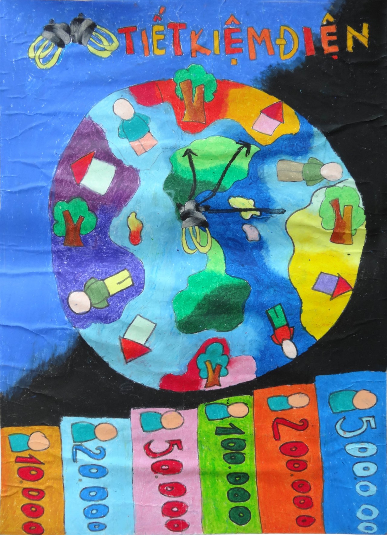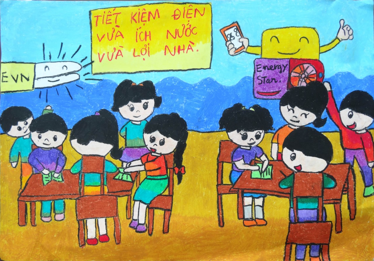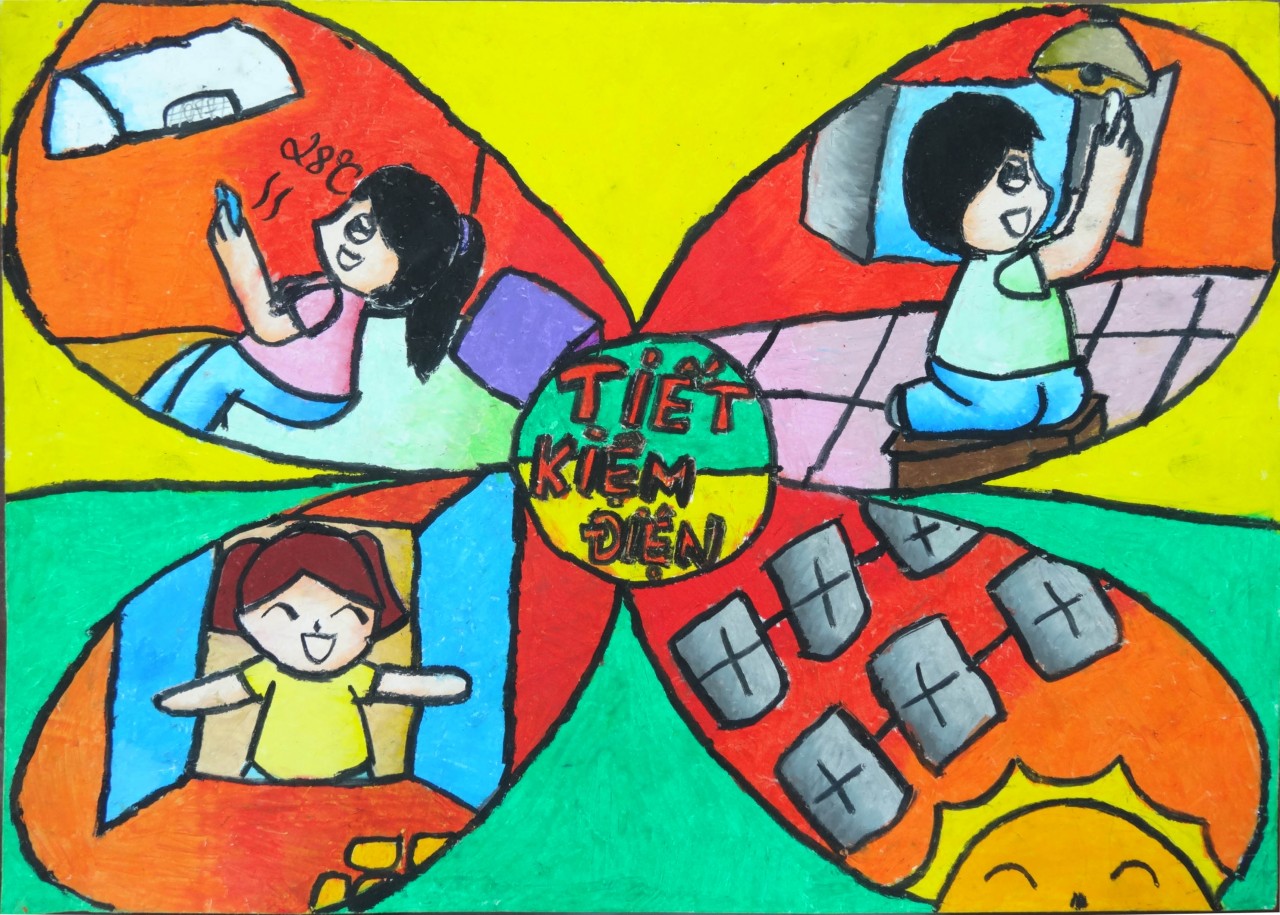 Tranh vẽ cổ động tiết kiệm điện khối học sinh tiểu học hưởng ứng "Ngày hội Tiết kiệm điện 2012" tại Cần Thơ