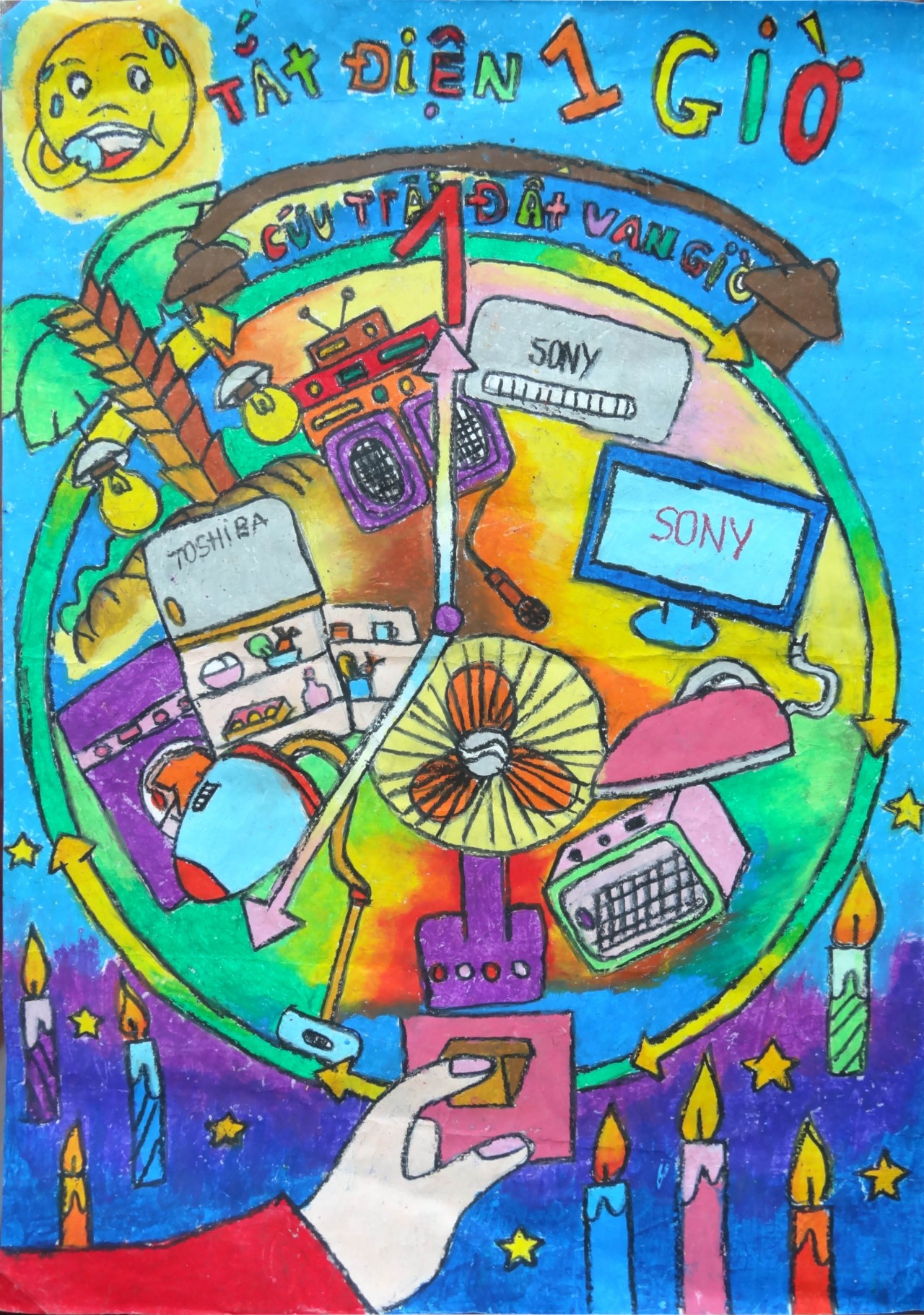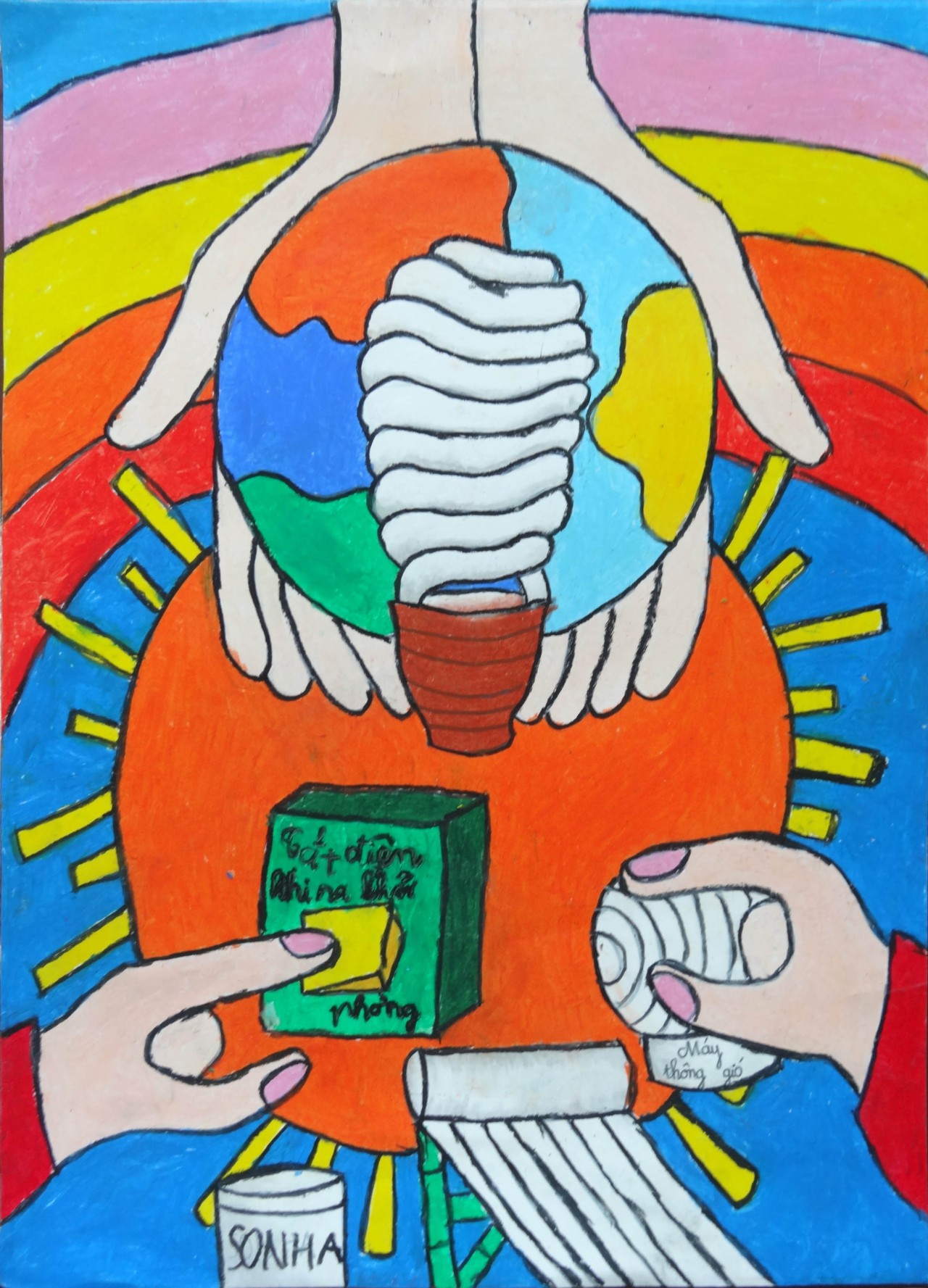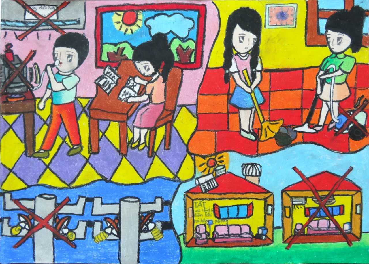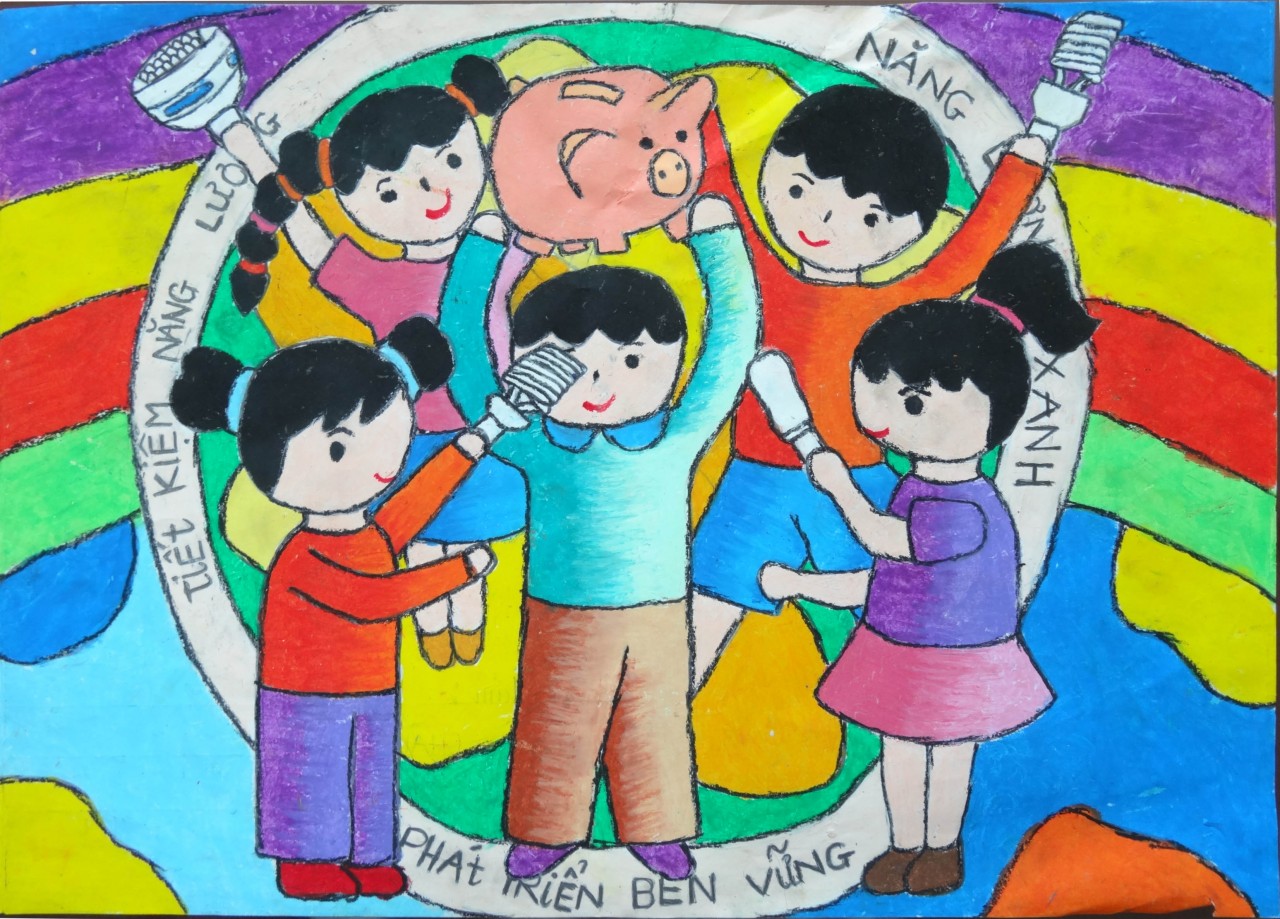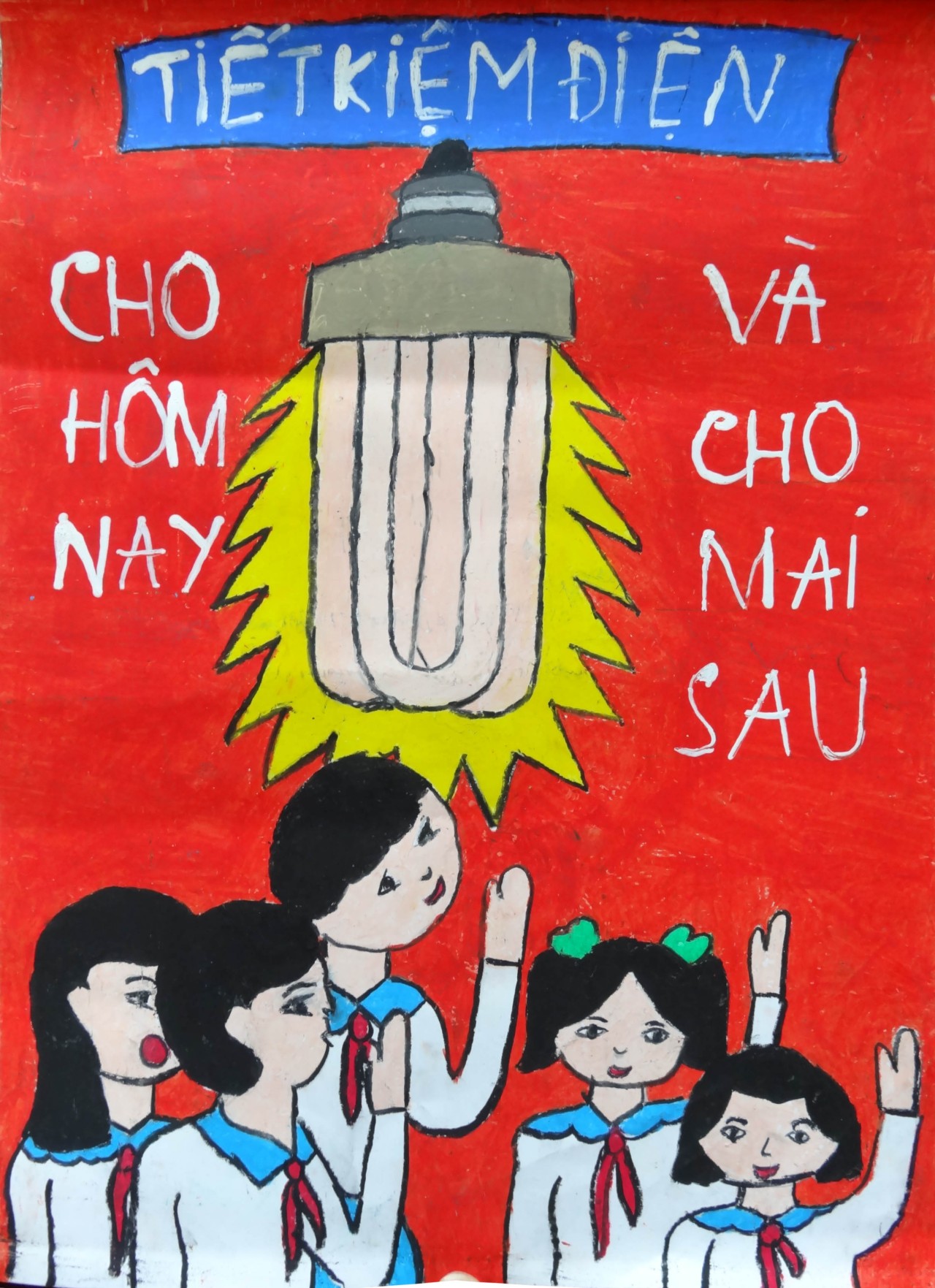 Tranh vẽ cổ động tiết kiệm điện khối học sinh tiểu học hưởng ứng "Ngày hội Tiết kiệm điện 2012" tại Cần Thơ