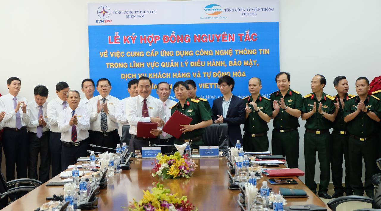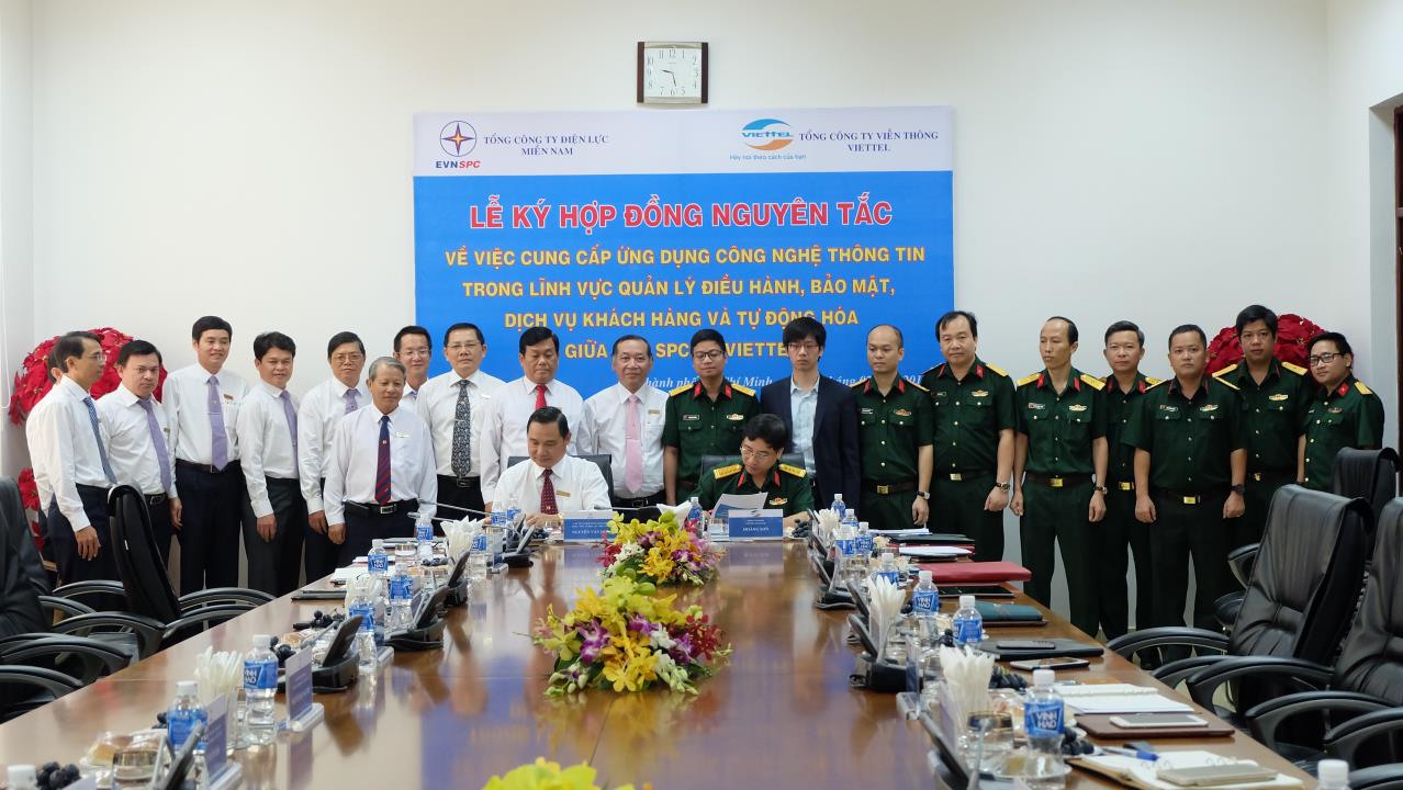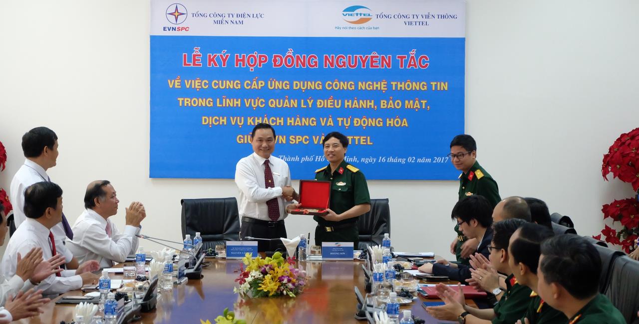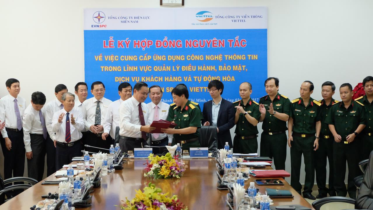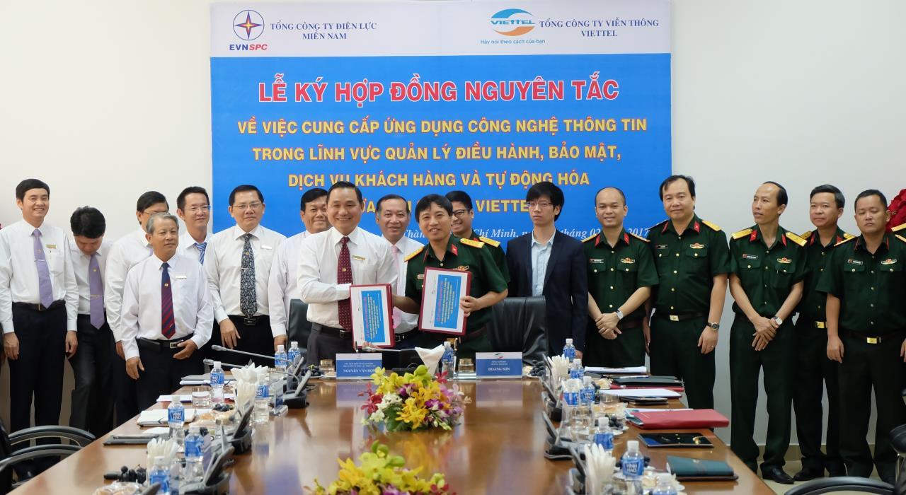 Lễ ký hợp đồng nguyên tắc cung cấp ứng dụng CNTT trong lĩnh vực điều hành cung cấp điện giữa EVN SPC và Viettel