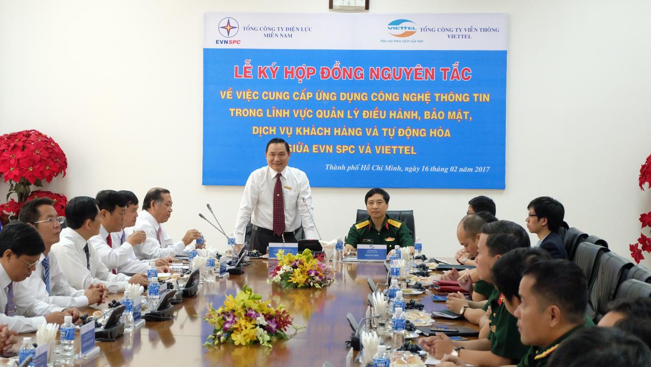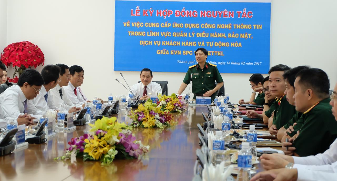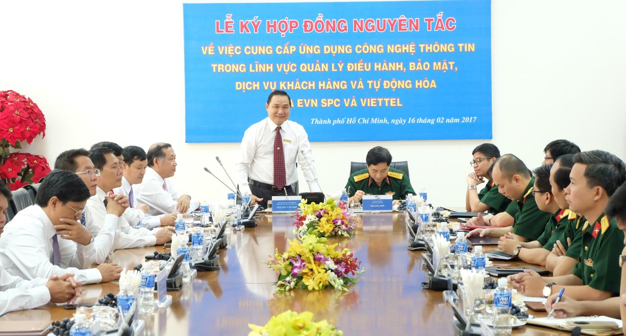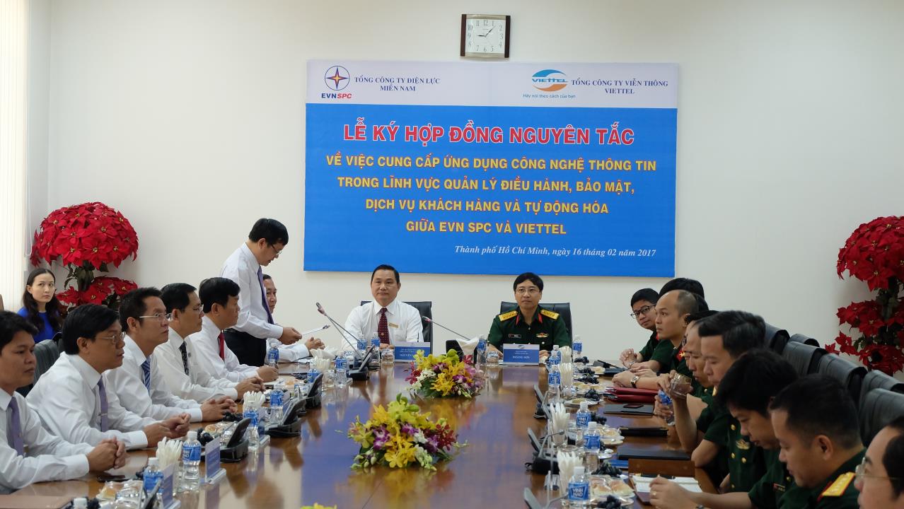 Lễ ký hợp đồng nguyên tắc cung cấp ứng dụng CNTT trong lĩnh vực điều hành cung cấp điện giữa EVN SPC và Viettel